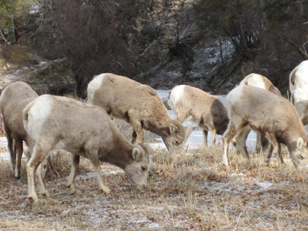 The day after skiing, we headed back down to Placitas – Albuquerque area. We went on a bit of a sightseeing tour. First thing down the mountain, we see a herd of big horn sheep feeding along side of the road. This was way cool, another up close moment with the NM wildlife! There were several of them and they didn’t seem to mind the vehicles stopping to take a look.