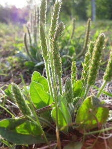 Several years back I took an herbal wildcrafting class at my local community college. I learned a lot in this class and have made several tinctures, salves, teas, and infusions using many of the powerful healing herbs that I learned about or have since researched. The only thing is, almost all of my herbs have been dried and have come from health food stores or online bulk herbal sites. I have recently taken a very big interest in my backyard and a few weeks ago I realized that I have an abundance of the herb plantain growing, everywhere! I have made a healing gel from dried plantain, in fact it was the second herbal concoction I ever made! Knowing it is so beneficial for cuts, scrapes, bites – you know, the things that eleven year old boys and clumsy mommies are prone to- I thought to collect some of the herb and make my own plantain salve to have on hand for any of the often injuries that happen in the back yard and around the house.