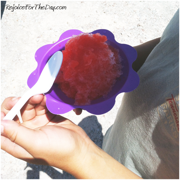 It was only an hour trip, but it was an hour of family time, an hour of exercise, and an hour of gorgeous sunshine! The only thing to have made it better would have been my guy there to do this with us. We will have to go again with him! Not much else could have made it better for the boy cause afterwards I stopped off and got him a shaved ice; his day was made!
