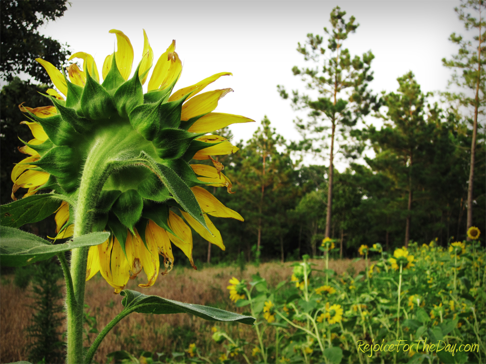 Much like other years before, I was not very successful growing things from seeds. I planted several flower seeds, poppies, daisies, lavender, and sunflowers, and it seems I only got a couple of sunflowers t0 actually spring up. (Wait, I did get some of the poppies and the daisies to spring up but they only made it a few inches tall and kind of stopped there.) The funny thing is that out of the sunflowers I did grow, almost half were not even planted knowingly by me! My dad gave me a bag of potting soil this spring that I used to plant bulbs in, and instead of bulbs, sunflowers grew. He had this great sunflower field last summer and I am guessing some of the seeds got into the sack of soil he gave me and that is how I ended up with them.