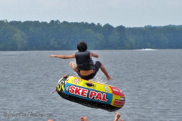 Our day that almost was not, ended up being a day to file away as another Lake Day memory! Can’t think of a better way we could have spent our Sunday. There was fun, fellowship, and friends. Jet skis that hardly stopped, boys that can now almost swim, and girls that couldn’t get enough of the fun; water skiing, wake boarding, and tubes. Plus jumping, flips and food. It was not just another Sunday, it was Lake Day!