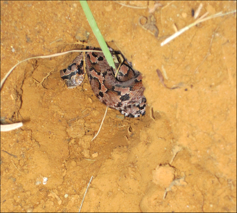 He wrapped himself all around the branches and just kind of hung out, like it was his home or something. Then he went into the hole, curled himself up and there he stayed. I was very, VERY happy I came across him when I was done with the weeding and not while I had my arms and face all around the mum pulling all those pesky grass blades that had made their way in with the plant. I am sure that would have been a pretty good scare had the snake been home sooner!