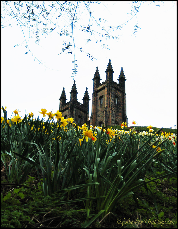 I dug into the hard drive again today for the weekly photo challenge.  I had several pictures that depicted the topic of near and far but this was the one I finally decided on.  It was taken in 2009 when we last traveled to Europe.  It was in Edinburgh in March, and it was one of the best trips we had been on.  There was just too much to see and not near enough time!  The daffodils were in bloom all over and I just loved how they lined the hills as we walked down from Edinburgh castle.  The building in the background wasn’t the castle but another one of the sights we came across.