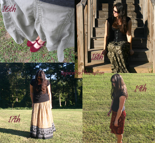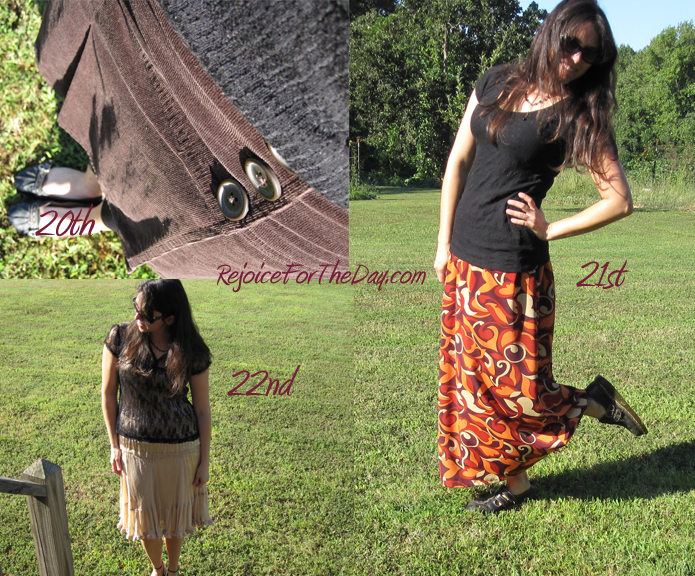 20th – Old Navy / 21st – homemade by me / 22nd – Banana Republic from Goodwill