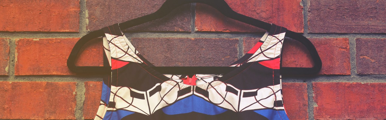 This is my second time working with African wax and this material was a little different than my last. This is stiffer and definitely needs a good ironing compared to what I used for the Kaleidoscope Dress. I changed one little detail for this make compared to my other Monique dresses. I decided, in a split second, to go with an exposed zipper – in red. Oh, and for the sake of keeping track of how I made this one differently than the others, I finally sized down to an XS, and cut the arm opening like the Marilyn dress pattern, which made all the difference in fit.