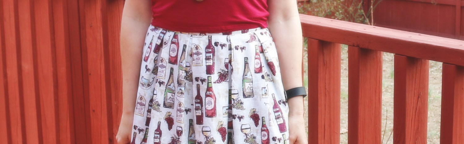 There was no way I was turning down this material! It was $2 something a yard on super clearance, and it felt wonderful. I got enough to make a dress, and maybe should have, but I was thinking the wine bottle print would be a bit much. The next best thing: a high-waisted skirt using a failed dress pattern. My intention for this project was to be a part of the Monthly Stitch’s January theme: cheers for a new year. Since the new year of 2016 found me bottling more wine, and I foresee many more bottles ahead of me this year as well, I thought this would be the perfect make to start off my sewing year, and it went well with the theme. (Up and coming winemaker over here, you know. Well, I’m working on it anyway.)