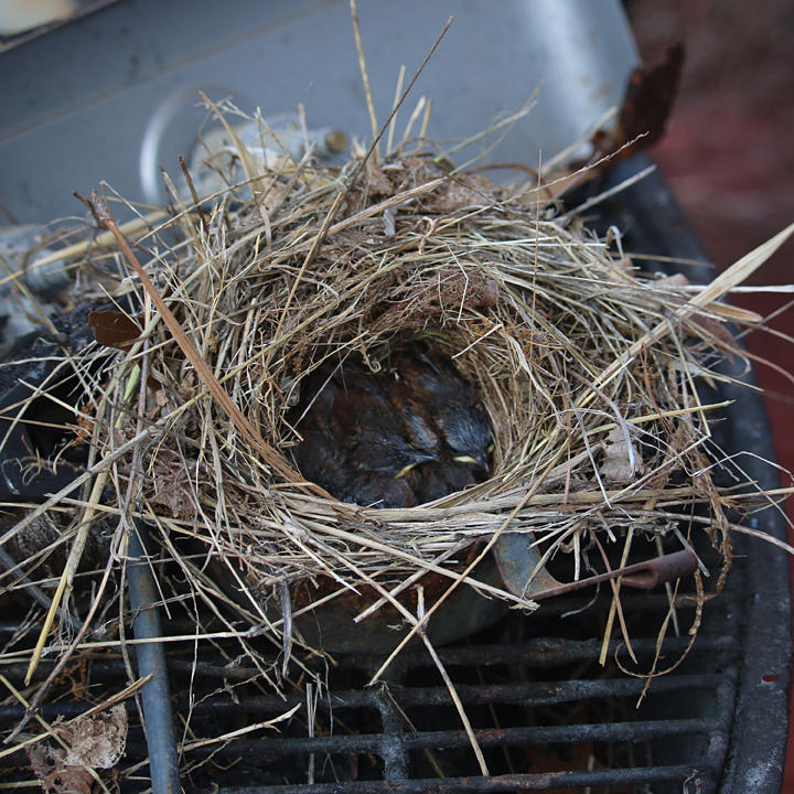 And lastly of what is growing in my yard, baby birds. I found the nest in the old grille with eggs in it not too long ago. I looked last week, and the eggs had hatched. I was happy to see this week that the babies are doing very well. I was not that hopeful after last summer’s mailbox nest that had eggs that never hatched, and after accidentally destroying a nest that was hidden in one of my rose bushes. I will be on the lookout for new little birds flying around soon.