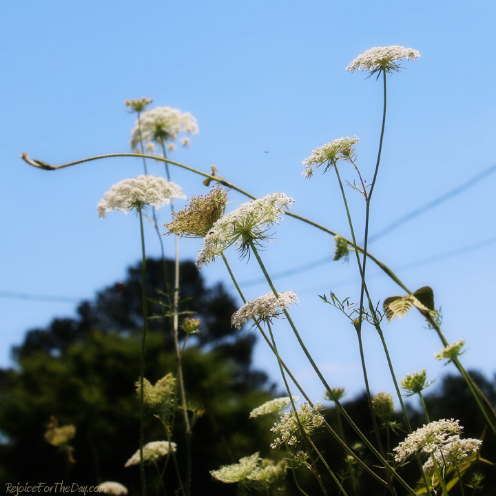 Speaking of weeds, besides some very sad looking roses, I have plenty of my favorite weed growing in the front yard: Queen Anne’s Lace, or wild carrot as it is also called. There are fields of this everywhere, and I hesitate to pick a new bouquet every week. The few times I have picked any, I usually end up with the stems that are covered in ants. I mostly enjoy these while on my daily neighborhood walks walks with Yuki.