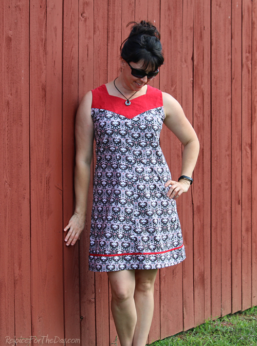 Number 3: And this only has to do with me and my lack of measuring skills apparently, but my red bias strip addition to break up where I added the hem band was too short. I was just shy of having the ends meet, and after taking pictures wearing the dress, I seam ripped it all off. I am undecided as to whether I will cut some more and add it back on at this point. I just hate messing with dresses that I consider as being done.