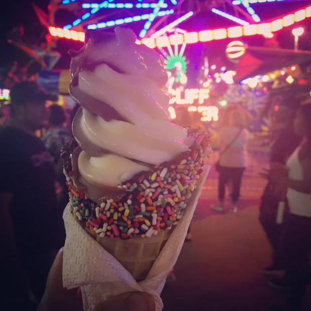 Something else that happened last week, we went to the county fair, twice. The last time I went to the fair was in September of 2007 – ten years ago! We had fun, but the boy enjoyed it the most. Actually, I guess Stephen and I must have enjoyed it more than we thought cause we went back two days later. Everyone in the county was probably there this night. Still fun and my guy and I found a nice spot to sit while the boy and his cousin were on rides. Stephen and I people watched and listened to a local musician playing a variety of songs – and instruments. He had quite a musical database: from Prince to Old Crow Medicine Show; yup, I knew the both of them, ha ha! Henderson County’s got talent, ya’ll!!! I guess you’d call that talent…