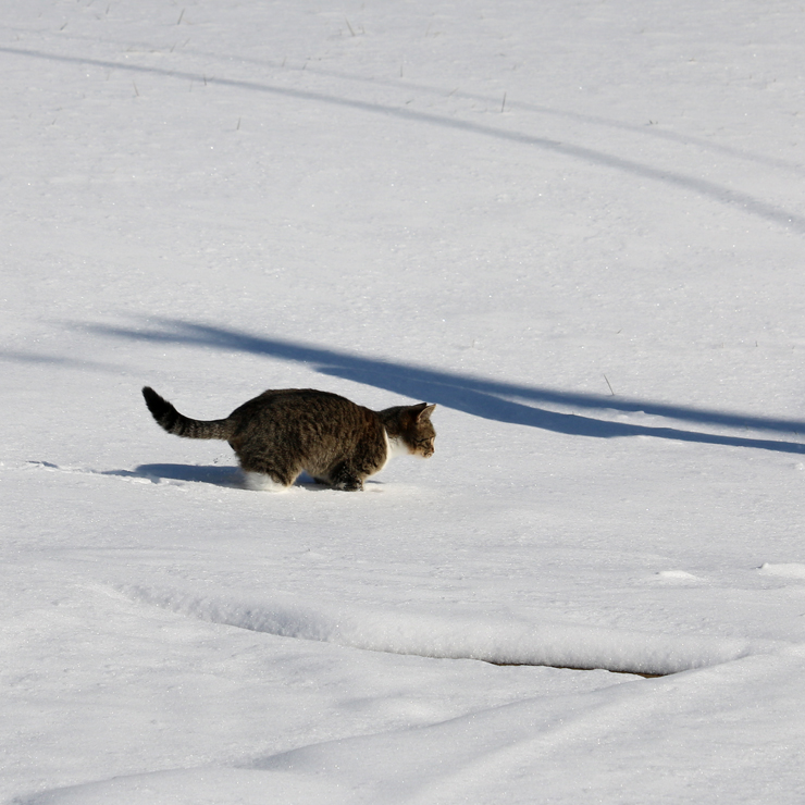 It was gonna be a trek. After having snow all day the day before, the roads were in no condition to be driven on. The barn isn’t that far, I told my guy when I asked him if he was up for a short walk down the road. Sure, I’ll go, he said in so many words, and after we had our morning cup of coffee, we all dressed ourselves in layers, put Yuki’s sweater on, and headed out the door into the garage where Mittens the cat had been hibernating for the last 24 hours. She has no interest in snow, unlike Yuki who constantly wants to go outside and eat it, but when Mittens saw all of us leave, she had to come too.