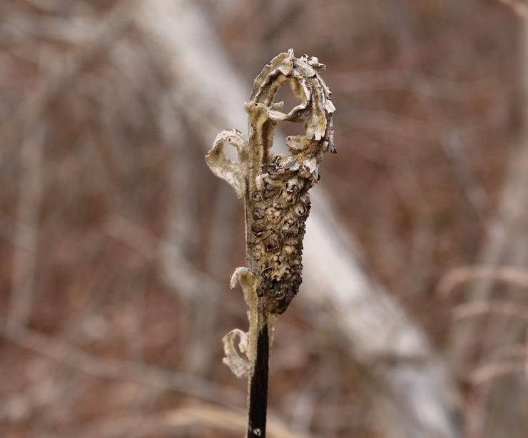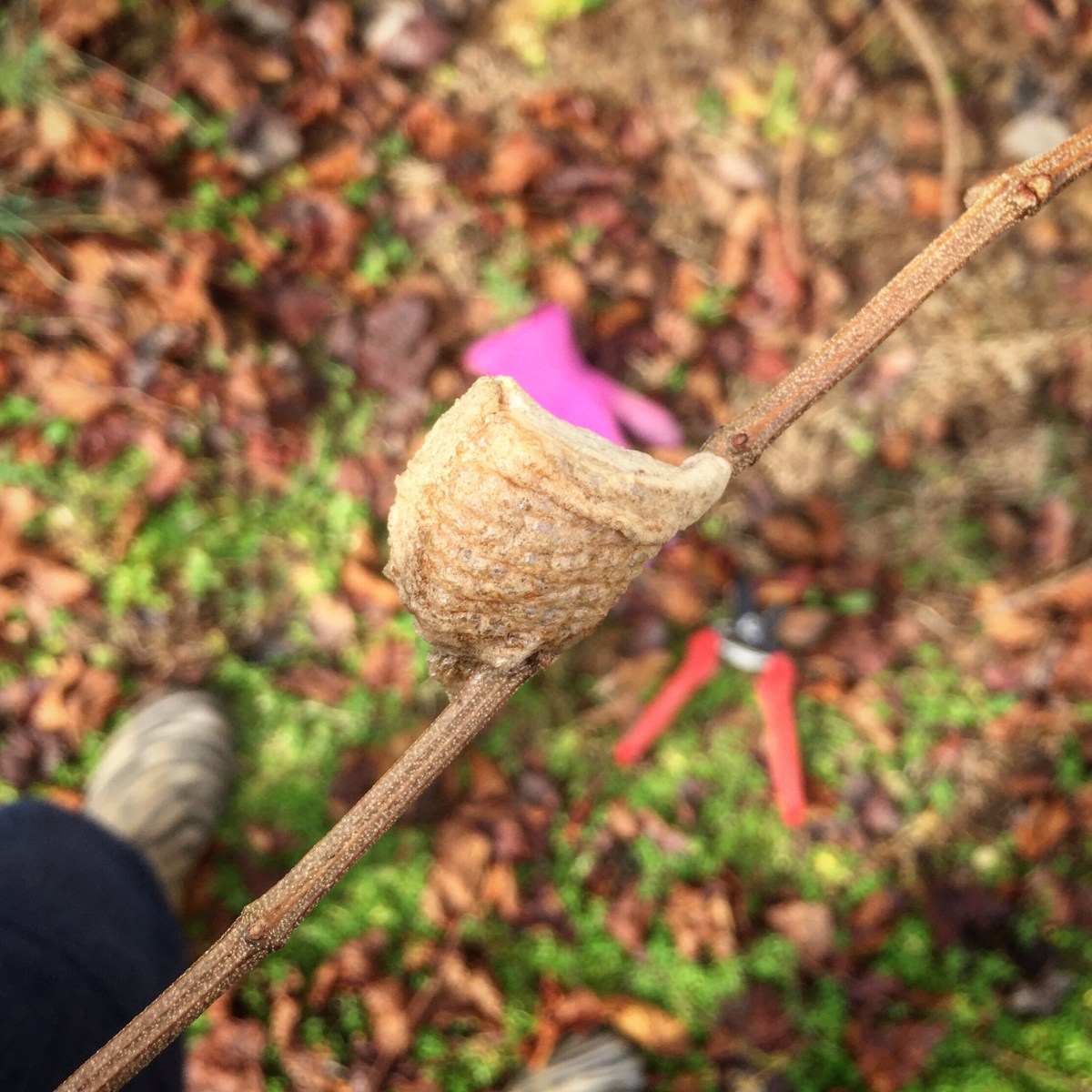 A few hours later, we were finished so we took a little walk around and I took a few pics of what I saw. Not a lot going on this time of the year, but it is always nice to see how things change as the seasons do. This first pic was actually from last Thursday and I forgot I had it. I found it on one of the vines and I am pretty sure it is a praying mantis cocoon. Those are the good guys, so I didn’t smash it as was my initial thought.