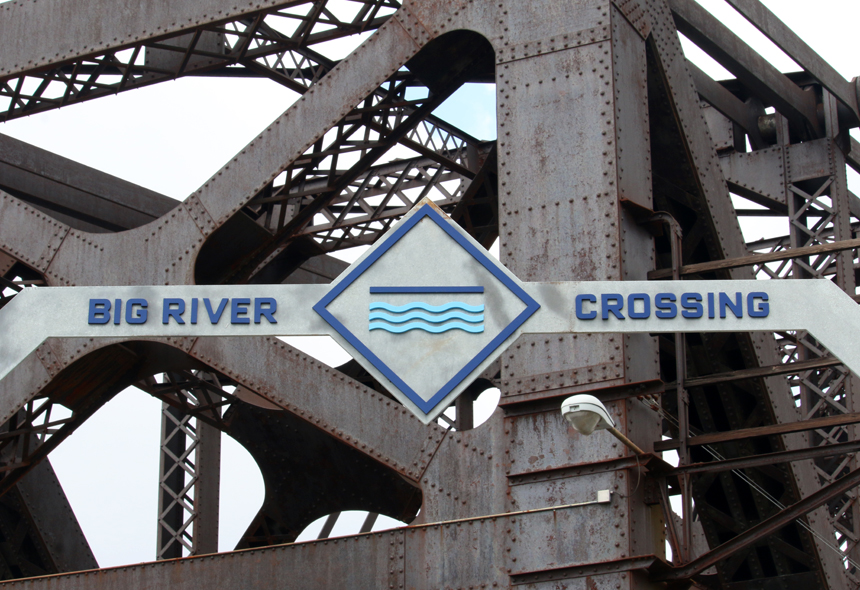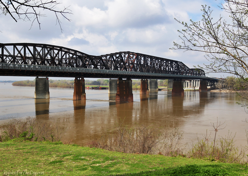 About half way across the bridge, we ended up in Arkansas. I completely missed the sign until the boy pointed it out. It was quite a bit cooler at this point than it had been over in the grass. The sun had disappeared for a bit so we were now walking a little faster.