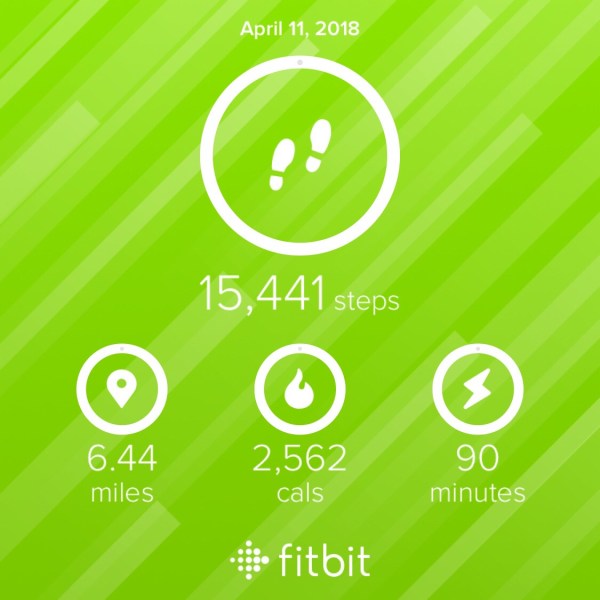 Wednesday, April 11th: Has some work to do with a couple of the vehicles this week so dropped the boy off at the gym while his was getting some tires on it. I took the time in town to enjoy myself a walk around the lake. I racked up the Fitbit steps this week for sure! Regular Wednesday stuff at home and a regular Wednesday night at the gym. I am feeling really good physically and mentally these days.