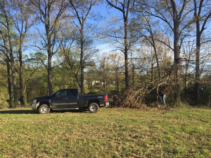 Let’s see, what else happened last week? My guy pulled down a tree limb in the back yard that we hadn’t been able to get to. So I guess it was a little drier than it had been last week, cause it hadn’t really been dry enough lately to drive back there. Also, we finally got a stronger truck and chains rather than flimsy ropes that just snapped when we tried before. It was exciting! Sometimes it doesn’t take much to entertain this group of three. Ha ha!