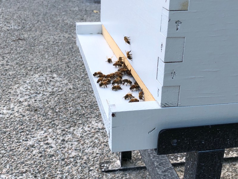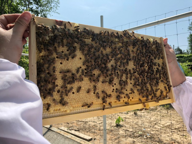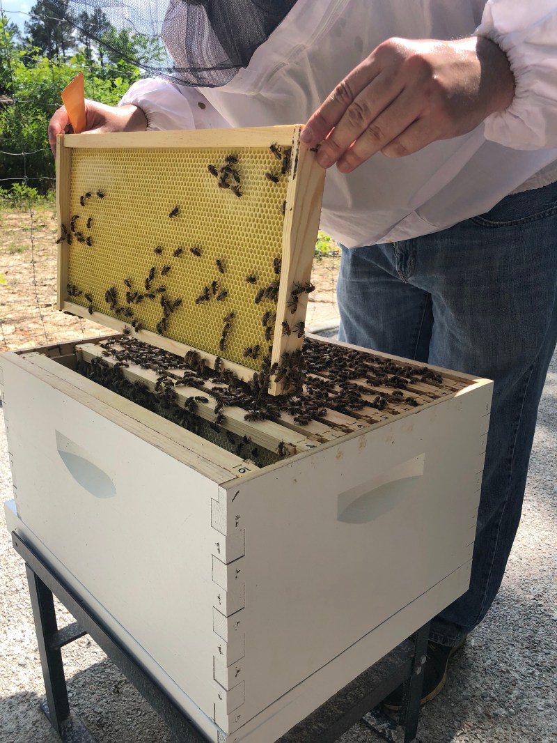 So far things are going great. We’ve been thoroughly checking on the hives weekly and checking on sugar water levels mid-week. It has been a month since we set up the hives and we’ve seen new bees emerge, we’ve found both queens on several occasions, and the hives seem to be growing well.