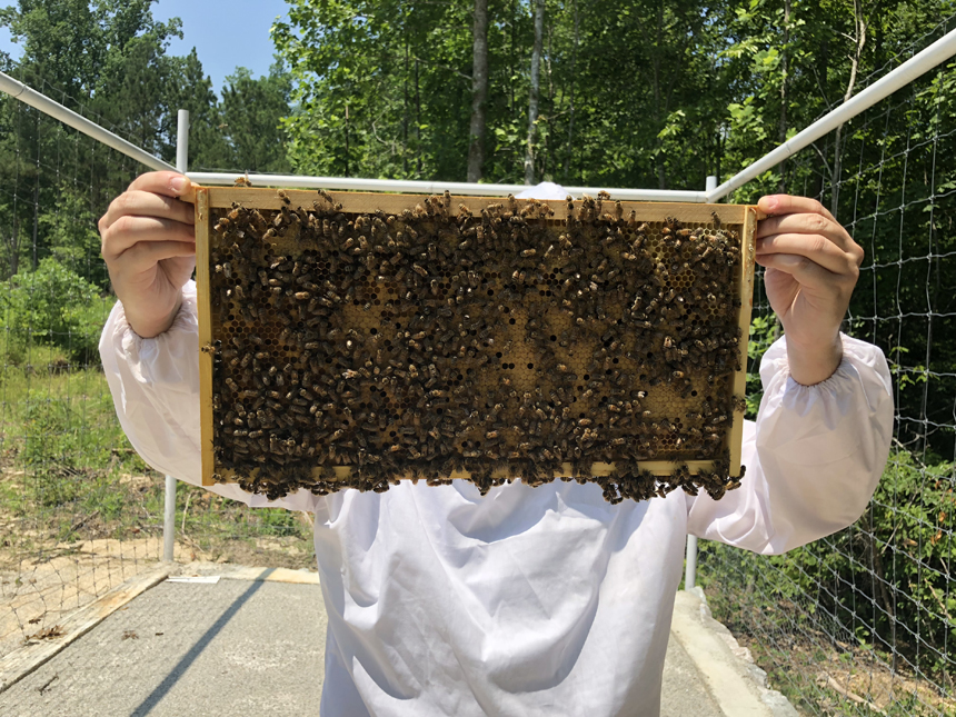 Sunday, June 10th – Bee hive check day and today was the day we added on to the hives. We added two new brooding boxes, one to each hive, both with ten frames. Hive one is thriving! So many bees all over it and the first level of frames were almost full so it was the perfect time to add on. Hive two had a lot less activity than the week before. Stephen found the queen in hive one but nothing but a queen cell in hive two. Uh, oh! He got rid of the queen cell cause he’s read that’s something you can do, but when you see one it’s an indication that the hive isn’t happy with their queen and she’ being replaced, or that the hive is queen-less. We are monitoring the situation and should know next week if we need to requeen or not. After hive checks and the property tour, we spent the rest of the day being homebodies.