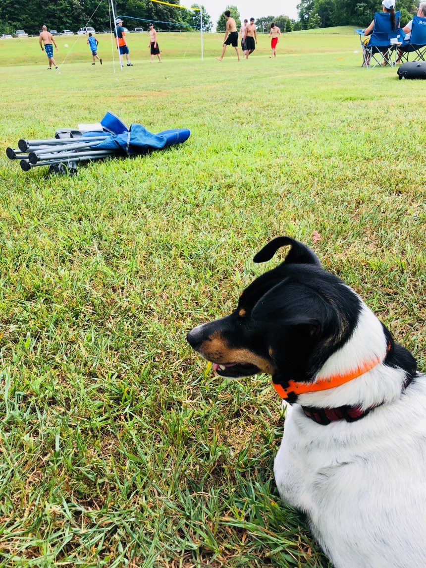 11:23 am – Umbrella is staked down, chairs are set up, and sunscreen has been applied. The fun has begun…