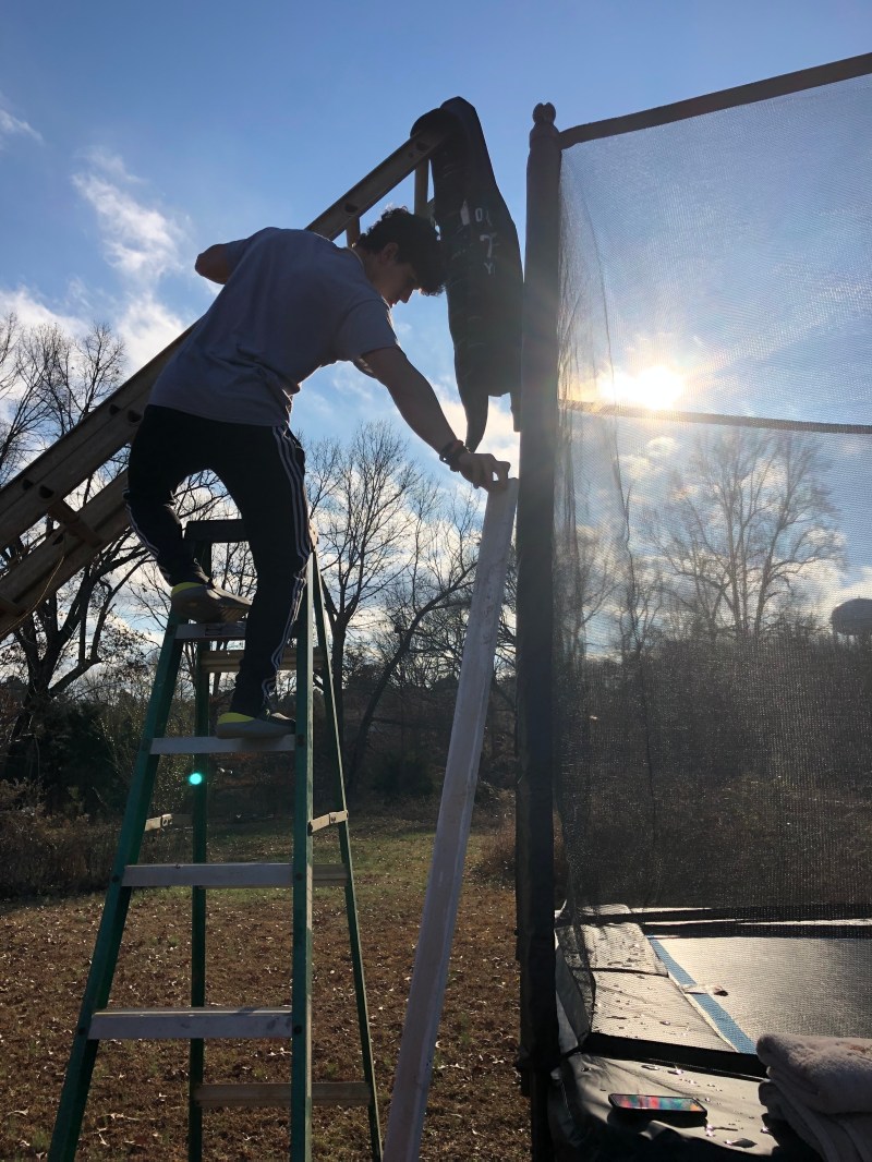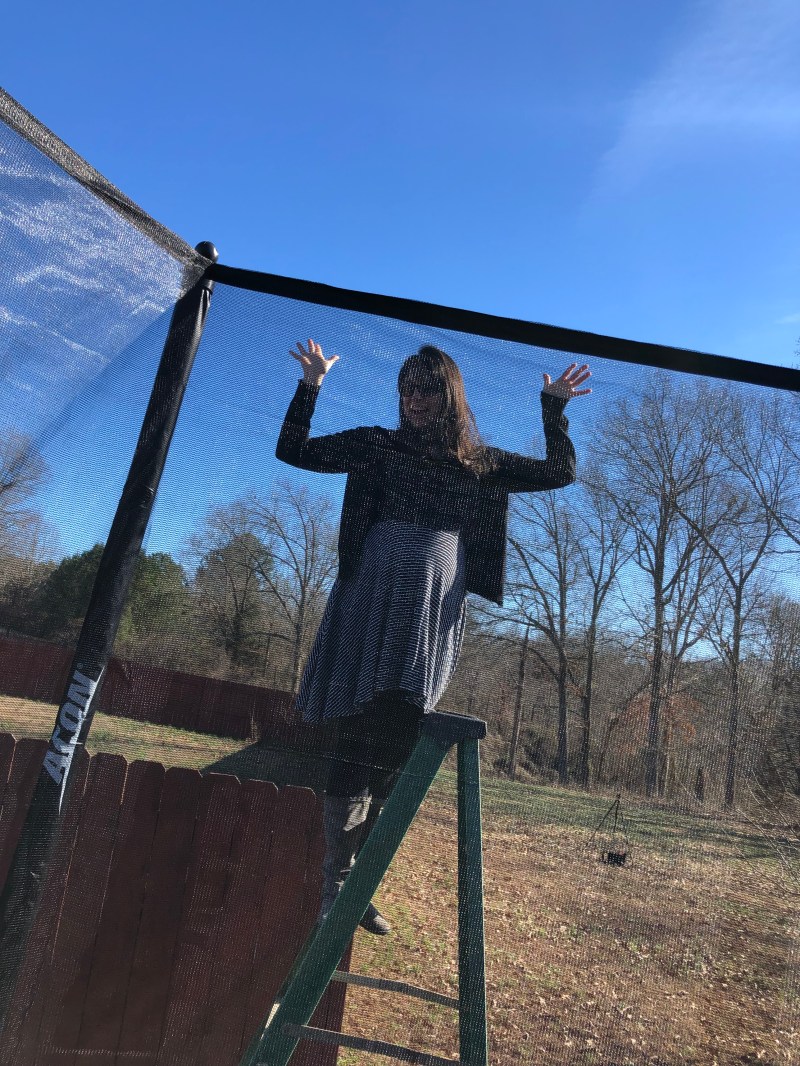 You see, Ethan has this mega trampoline and needs lots of videos to post on his Instagram account, so since I was outside anyway, I was asked to climb the ladder and record for him. He has his own little set up, and it works really well, but he has to go up and down every time he wants a video. It’s easier for him to have me stand on the ladder. Easier for him, because I get tired of “one more, no, really, just one more…” over and over again.