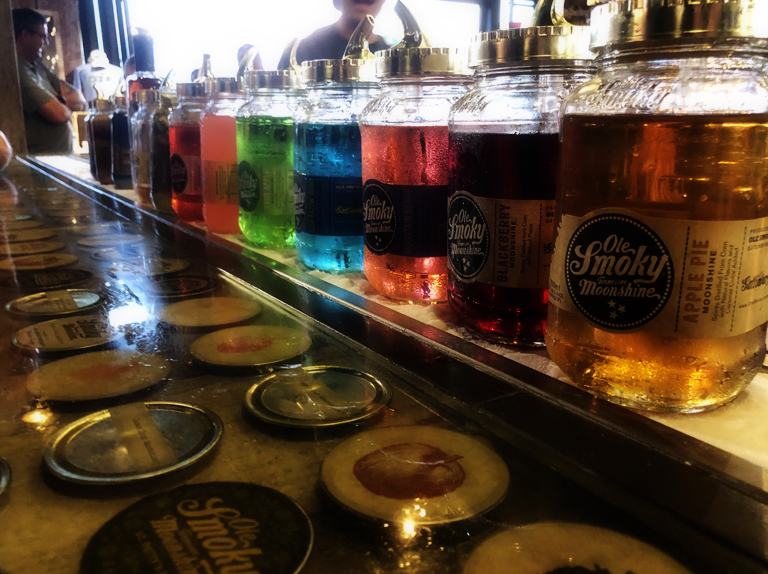 We had dinner at the nearby shopping area.  After this we walked around and window shopped, then we did a bit of moonshine tasting.  There was a Ole Smoky Moonshine location at the shopping area and we thought we’d stop in and see what it was about.