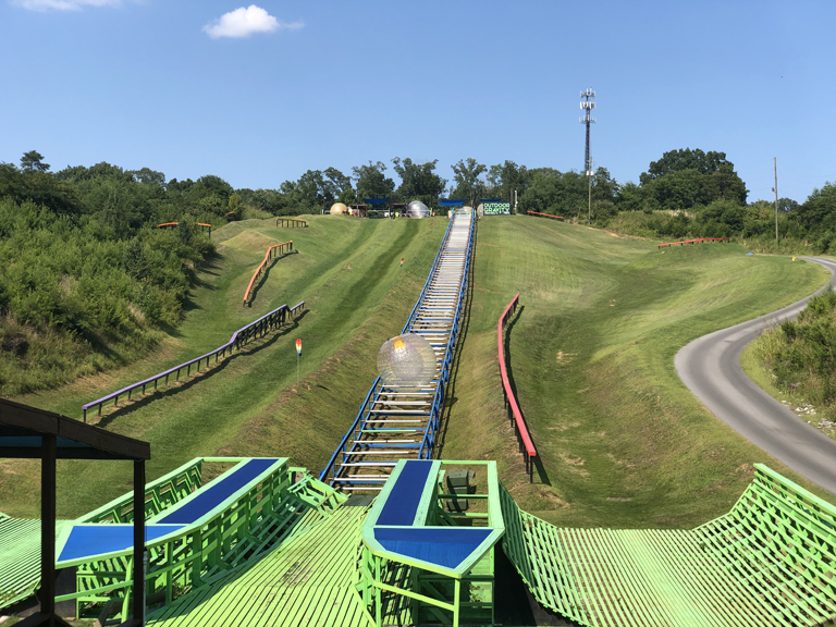 Oh, yeah, I remembered there was Zorbing in the Smoky Mountains!  I had read about this years and years ago.  We looked it up and found it was only 10 mins from us so we changed into our swimsuits and drove down the road.  This was a vacation bucket list item for me from way back, but something I had completely forgotten about.