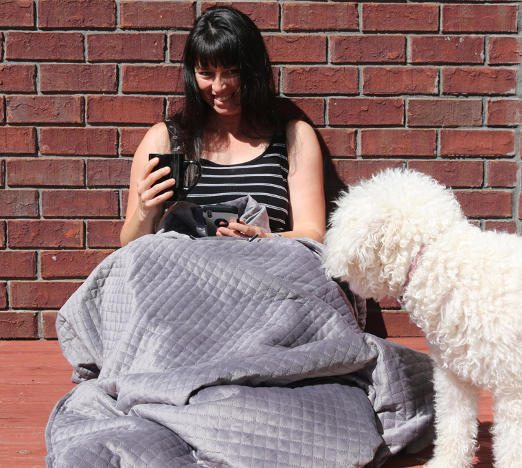 It was $49 on sale at Costco, but I would pay the full $69 for it. I got the black one, but it clearly is gray. The cover comes off to wash and the blanket is weighted by glass beads. I can’t feel them out so they must be very fine like bean bag filling size? I don’t know, and I don’t plan on opening the center to get a better look. Very shortly after getting this blanket, I did get an advertisement from Joann’s craft store that weighted blanket centers were now available for purchase to make you own weighted blankets. I think it would be a very neat DIY type of gift if you had the time, but if not, buying an already made weighted blanket for someone would be a great gift as well. And it’s also perfect for sitting under while drinking coffee and browsing an ipad or iphone in the morning, or while lounging on the couch. I have been getting plenty of use of mine in these ways as well.