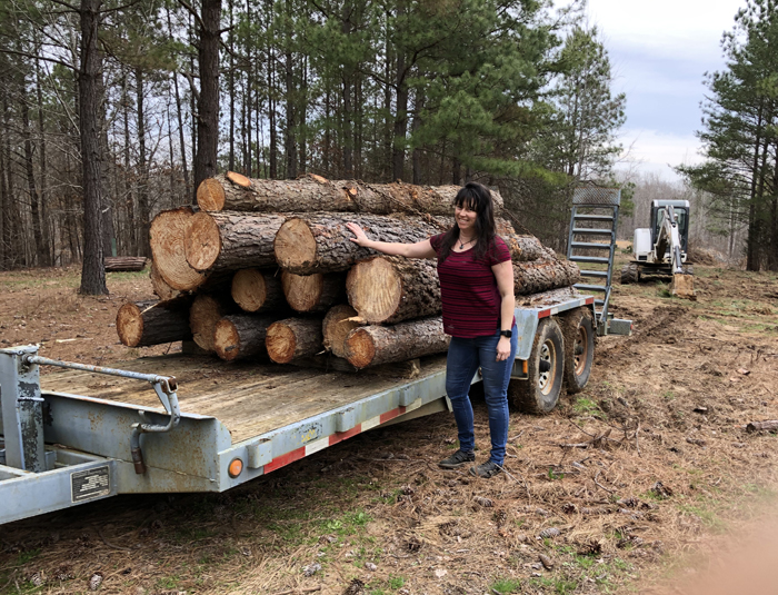 And my photo op of the month, me and a bunch of logs my dad cut down and hauled off. I did contribute in a very small way by helping to get the trailer out of the mud.