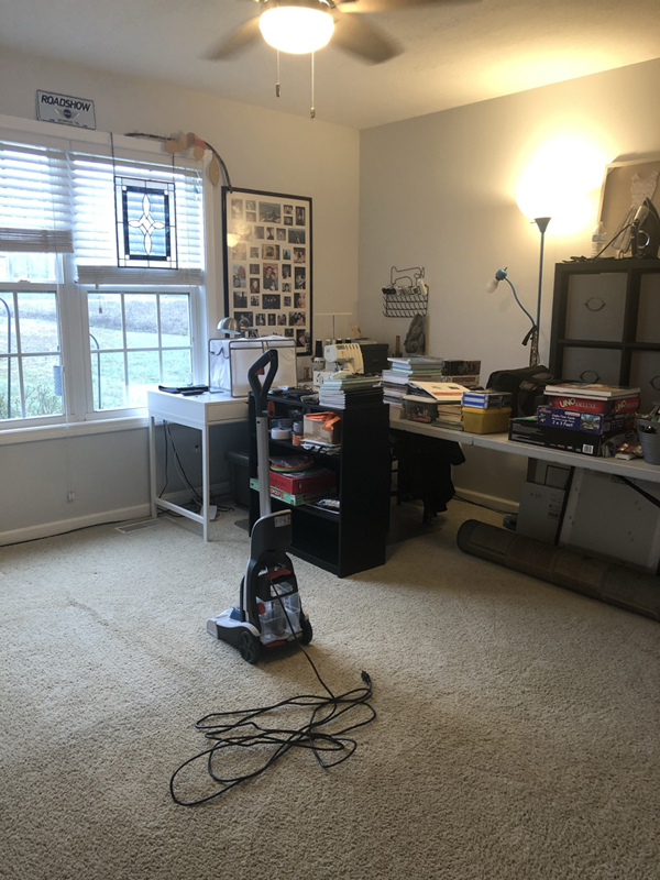And in other cleaning news, I finally got a start at cleaning the carpet in my sewing room, the former computer/school room. What I thought had the dirtiest carpets in the house until I shampooed the boy’s room after he moved out. I started it. Since there is furniture I did one half and will do the other half this next week. I should have done it yesterday instead of the garage, but I wanted to make a dress. Next week. Probably.