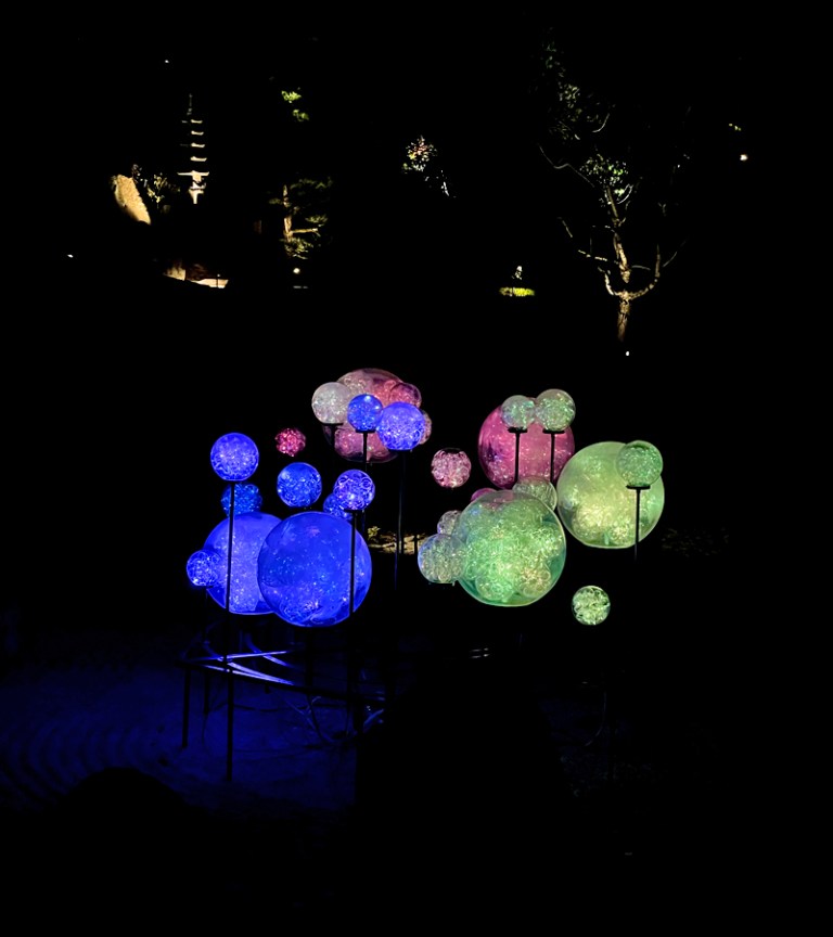 Stephen and I had another monthly trip to Nashville and stayed at a really cute Air B and B with its own wall mural. This time we were there to see a light exhibit at Cheekwood. It was the perfect night for it which is always great when you by tickets months in advance not knowing what the weather will do. I tried to be the photographer I thought I was and took my nice camera, but the iPhone pictures came out way better. Here are a few from the Bruce Munro Light exhibit.
