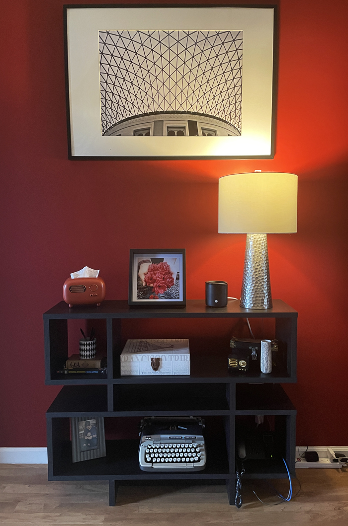 And lastly of my March update, I got a little update of the furnishing sort. This lamp, I love it! It took me two months to actually decide on buying it, and I liked it so much I bought the set. I have had these in my mental wish list for a couple of years. And as I was waiting on them to arrive, I thought about where I might put them in my living room and decided a shelf upgrade was in order as well. The lamps are perfect for the side tables in the living room, but the shelf was a much needed addition anyway. I had to have somewhere to put the older lamp, right? 🙂