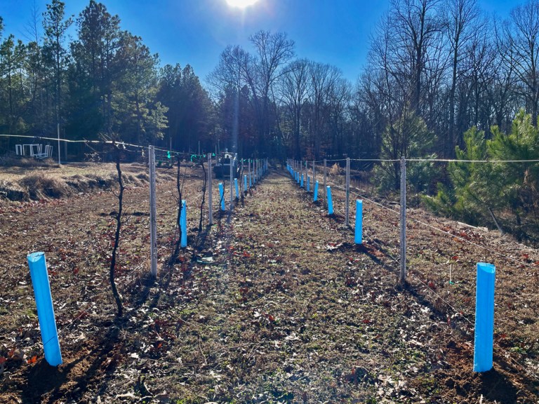 Out in the family vineyard, we started the year planting. We got 33 new muscadine vines and 24 new blackberries into the ground. Perfect timing too! It was cold the day we planted, but not as cold as a couple of days later.